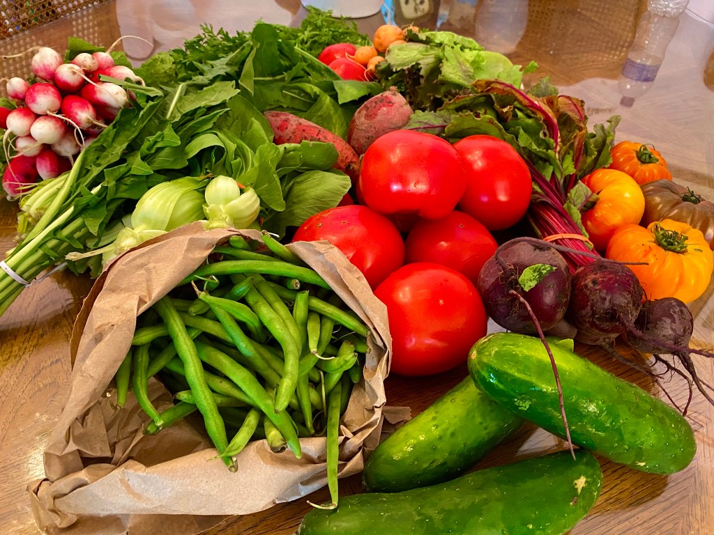 We rushed home with our colorful bounty intent on a juicy tomato sandwich and a big salad with our dinner.