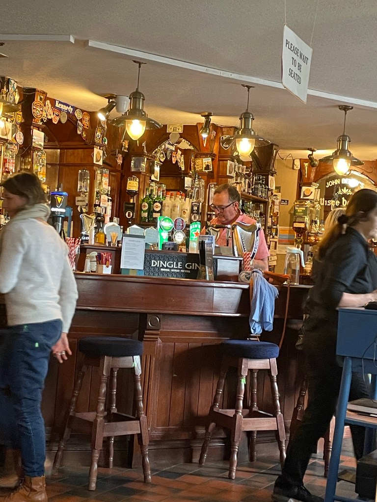 We were the only ones wearing masks at that time and felt awkward, but we had already pushed our luck quite a bit and it was a tight space. We chatted with a couple visiting from Denver CO. They had already covered a lot of territory, starting in Dublin and were going to the Ring of Kerry in the morning, so we were able to nab their seats on the bench close to the musicians.