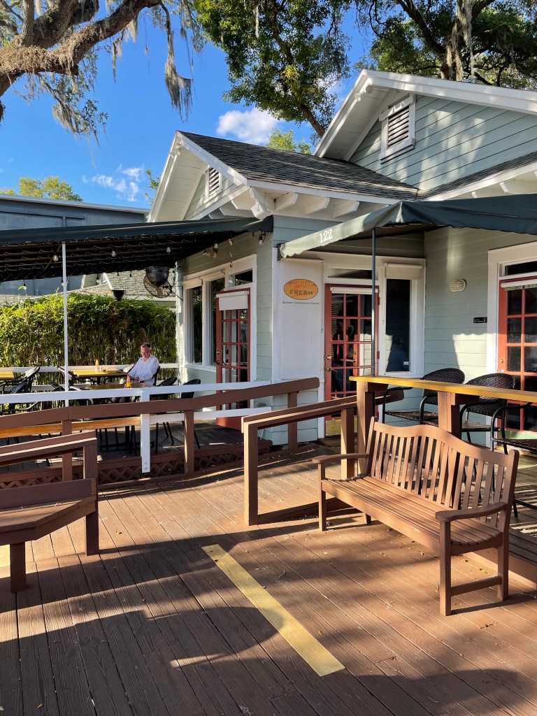 We looked at the menu for Parts of Paris, and although they had an enticing array of desserts including crème brûlée and chocolate mousse, we kept strolling. We peeked into another pretty house from the 1920’s and the decor beckoned us in. We sat in the front parlor and had coffee and a delicious fruit crumble. The atmosphere reminded us that this was once a gracious home. When we go back for dinner, we’ll opt to sit in the sunroom in the back of the house of The Kitchen at 156 4th Avenue N in Safety Harbor.