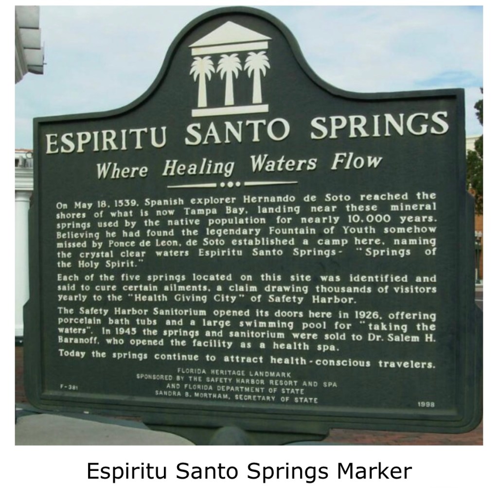 Safety Harbor is an historic town, established in 1917, in the Northeast corner of Pinellas County. It was originally discovered by Hernando de Soto in 1539. He believed he had found the legendary Fountain of Youth and named the mineral springs Espiritu Santo Springs. Today there is a resort and spa on the site that continues to offer access to the healing waters.